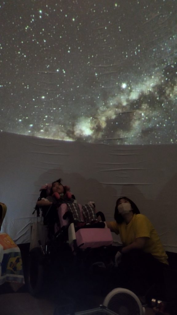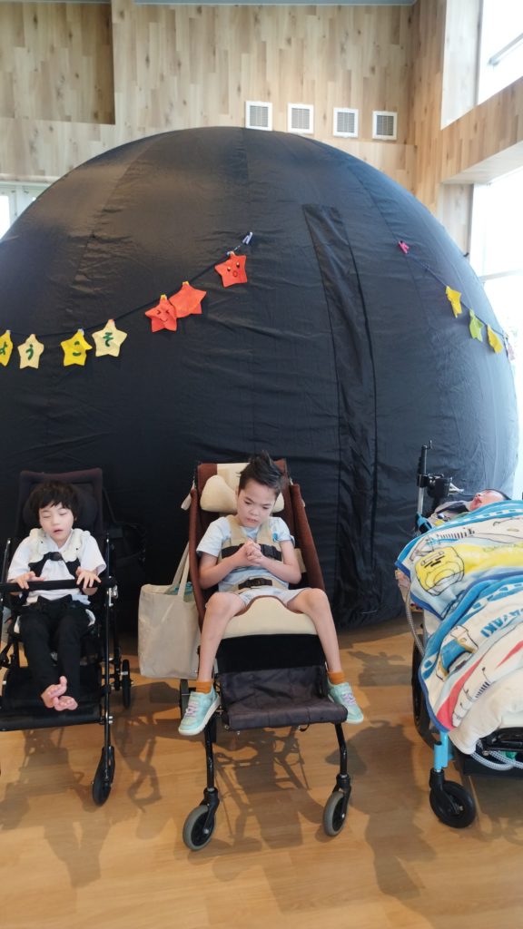 目をまんまるにして星を見上げる子、薄暗くてウトウトする子、スタッフさんの説明にじっくりと耳を傾ける子…それぞれのペースで宇宙の旅を楽しんでいました☆